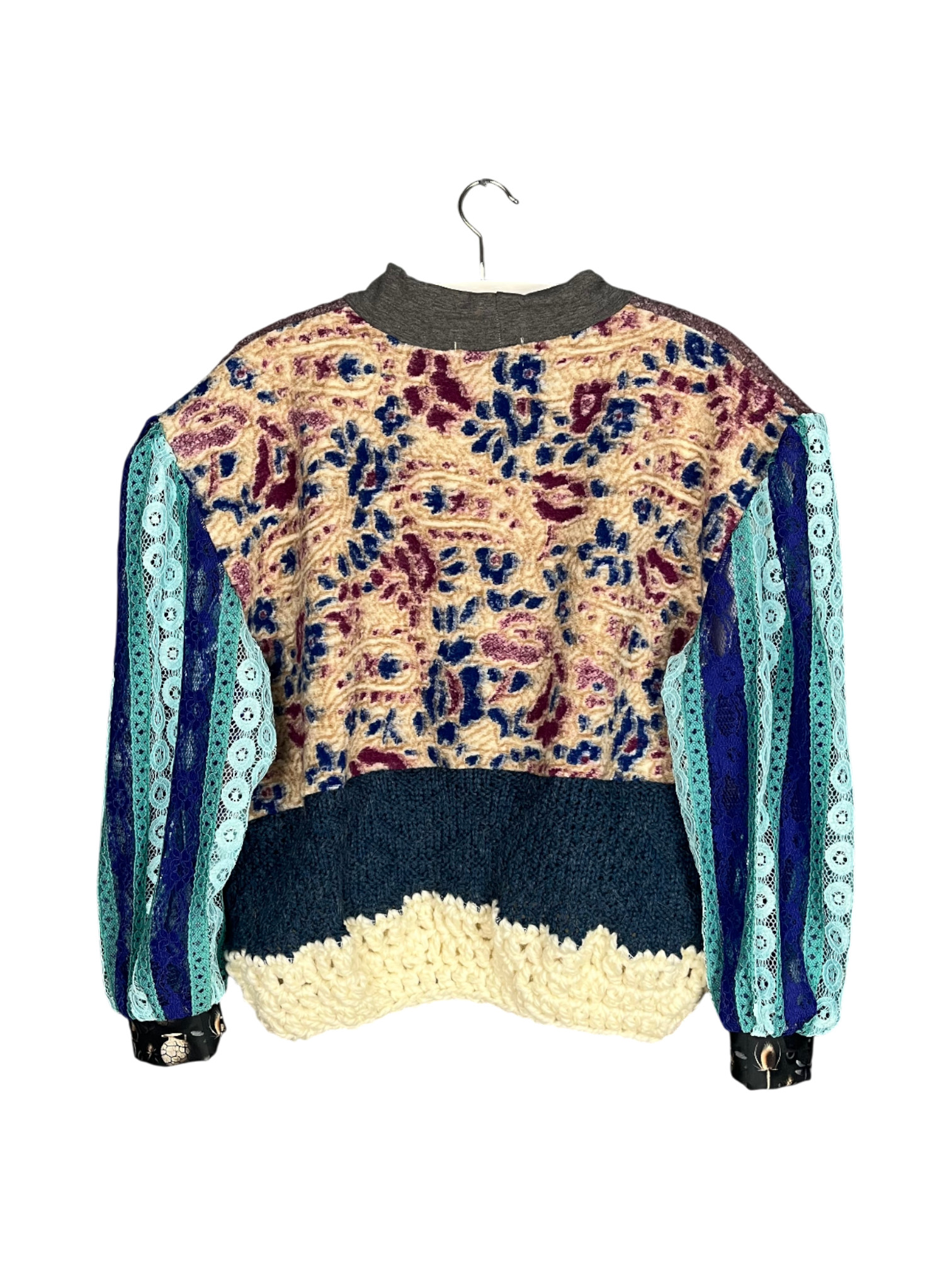 Graphic Patchwork Cotton Wool Sweater Blue and Ecru