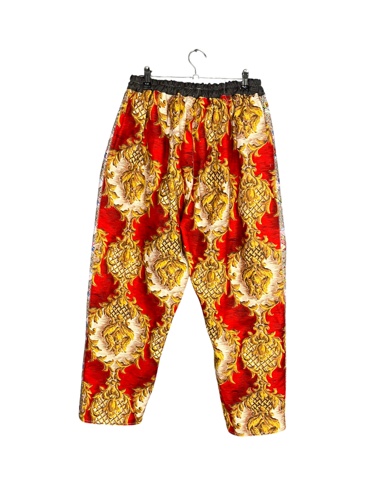 Vintage Cat Print Wide-Leg Pants – Beige & Green
