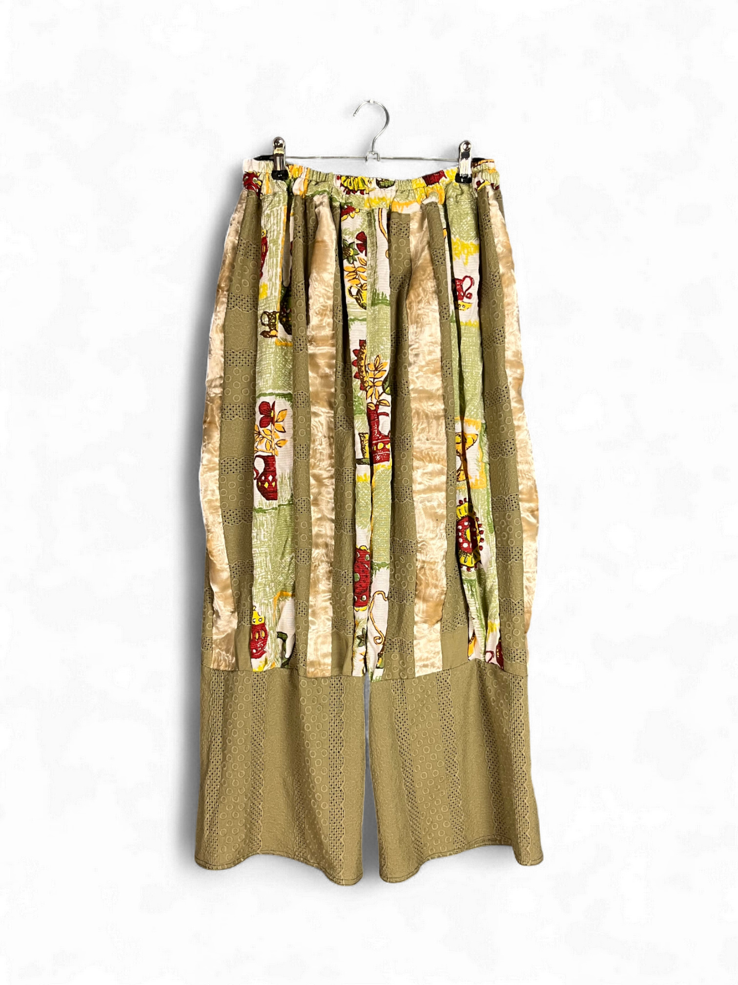 Green Patchwork Pants with Vintage Kitchen Print