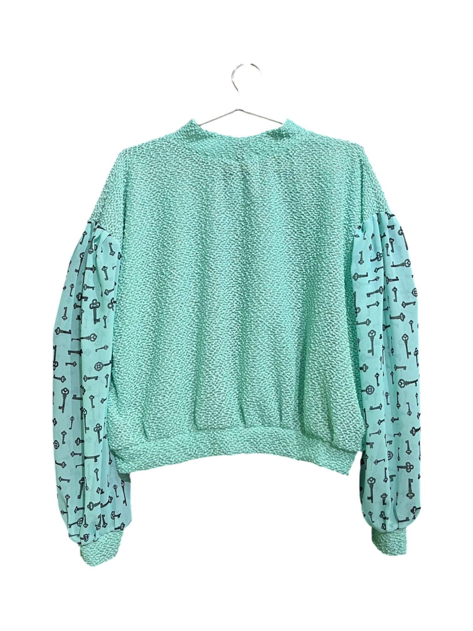 Mint Key Print Patchwork Top