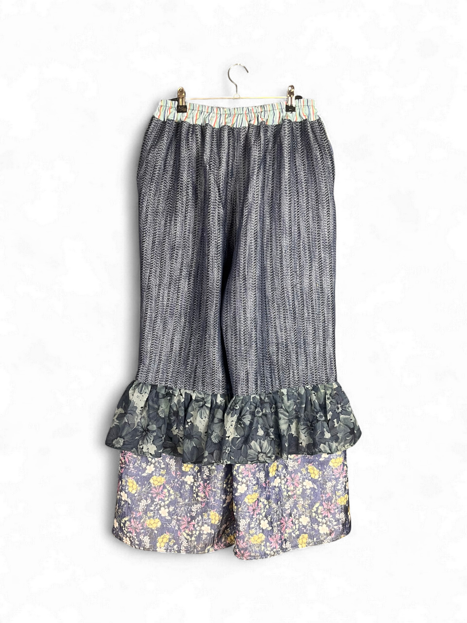 Patchwork Skirt with Multicolor Print and Crochet Panels