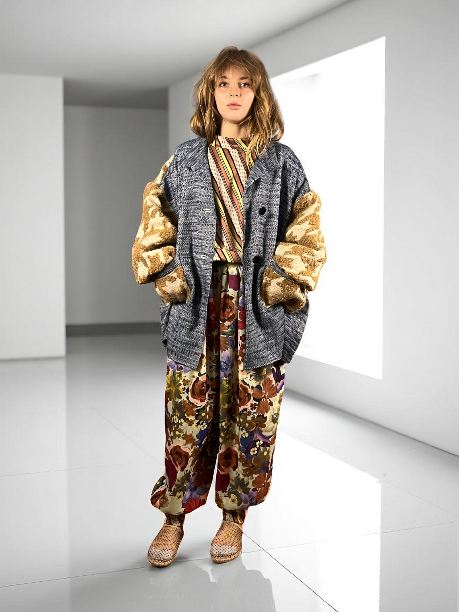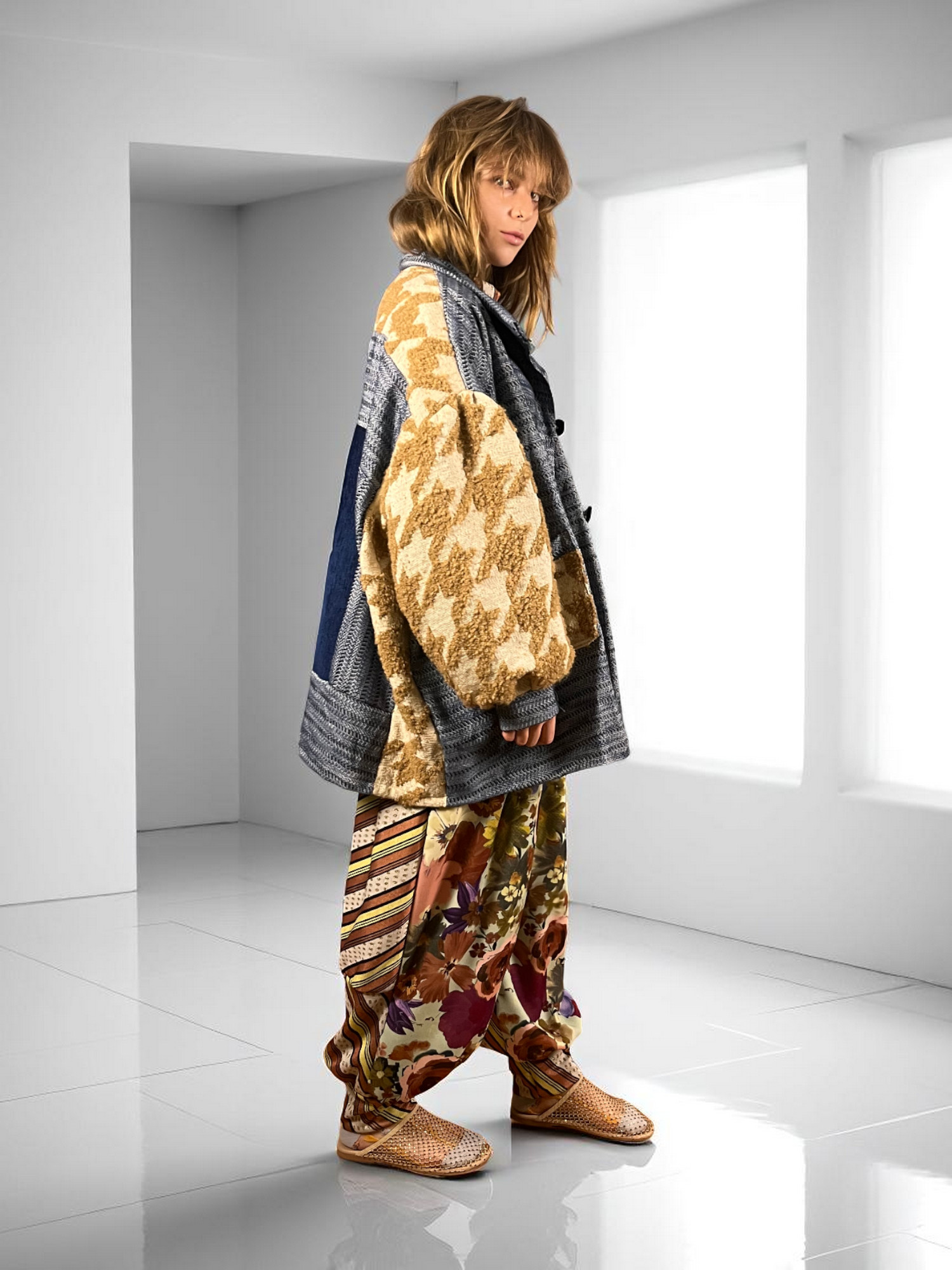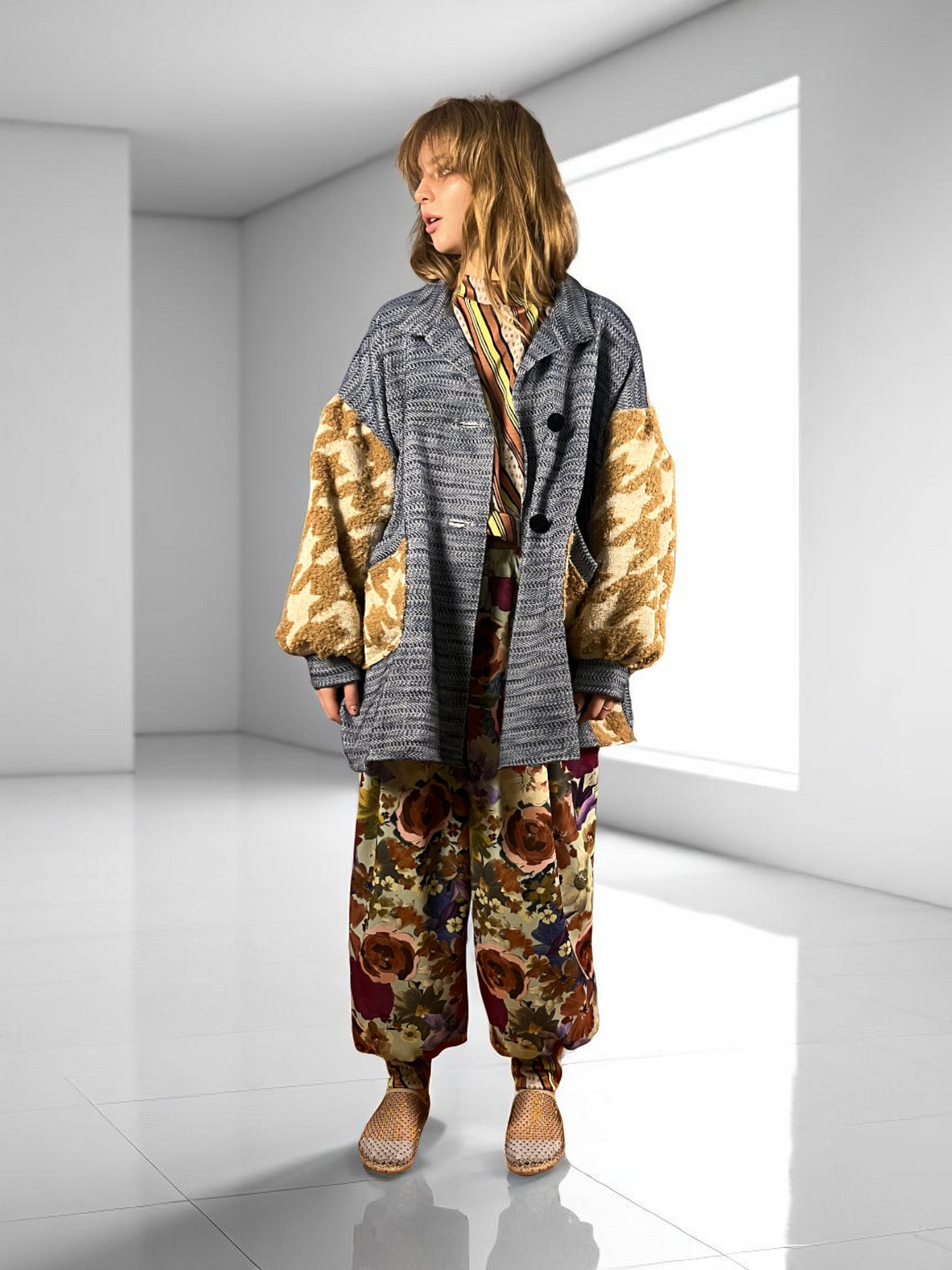 Sunflower Jacket with Houndstooth Sleeves