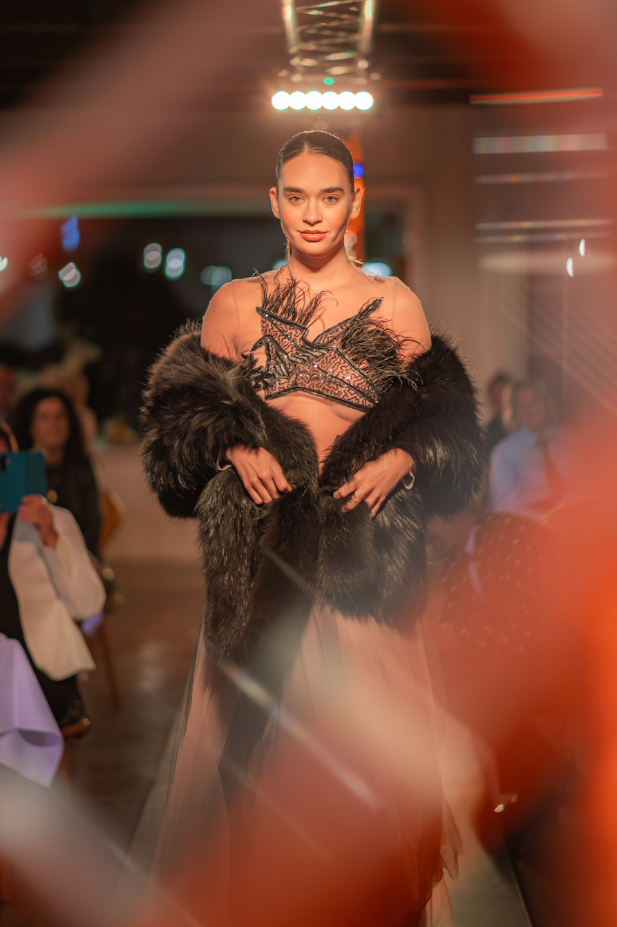 The runway featured three designers, and when my own pieces entered, I felt a wave of emotion. Showing my collection in this woodland-by-the-sea setting created a conversation between the imaginative world of
